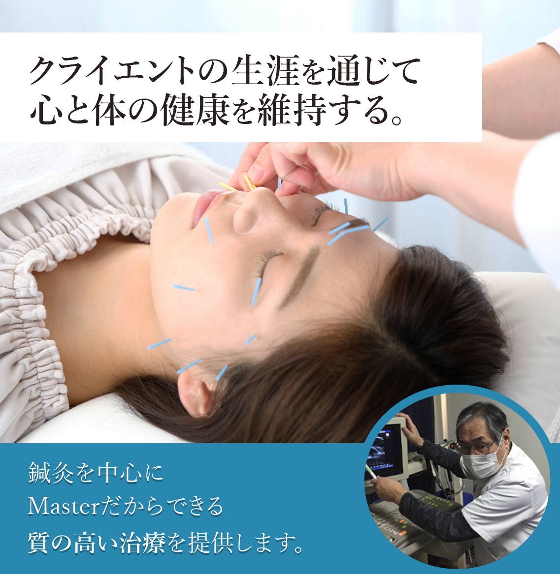 まず痛くありません。ほぼ無痛です。若いクライエントほど性別に関係なく、「お肌の張り」「小顔」といった効果は、ほぼ1回の施術で現れます。その理由は、たんに“お顔に鍼を刺すだけ”ではないからです。生理学・解剖学、東洋医学の総合的見地から、あなたにとって最適な「ツボ」を刺激するからです。